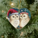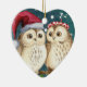 Sweet, owl couple sitting together as the snow falls, is featured on both sides of this ceramic heart ornament. Front of ornament shows an enlarged picture of the owl pair. Back of ornament reads, "Our First Christmas Owl Always Love You", with a smaller picture of the owl couple. A lovely decoration for newly engaged or just married couples!