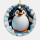 This adorable ornament is the perfect way to commemorate a baby's first Christmas. Featuring a cute, smiling Penguin emerging through a cracked ice design, this charming keepsake can be personalized with text and a photo of baby on the back. It's a beautiful, memorable gift for new parents and a sweet addition to any Christmas tree.
