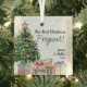 Our First Christmas Pregnant! Personalized holiday ornament keepsake for your first christmas expecting your 1st baby. The design features a lit christmas tree with crib and gift wrapped presents. Personalize with your names and the year and, edit the word "pregnant!" if you wish. Perfect as a pregnancy announcement or as a little sentimental gift for yourselves.