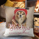 First Christmas Puppy Photo White Stars Pillow. A custom dog name in a trendy script and white stars overlay the photo. Personalize the pillow with your dog`s photo, name and year of birth - insert your favorite puppy photo. You can use this custom pillow for any pet. A lovely holiday keepsake for a dog owner.