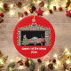 Design features a cute Red Airplane inside a hangar next to a pretty Christmas tree. At the bottom of image lies the text '[Name] 1st Christmas' and year. Customize this ornament with your specific details. This would be perfect for that little boy aviator for their first Christmas!