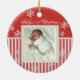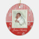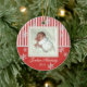Red and white stripes and snowflakes photo ornament. Add any photo and change text. Great for newlyweds, new baby, family photos and more.