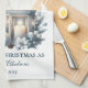 Celebrate your first holiday season as a couple with this cozy and heartwarming card, featuring a customizable photo, family name, and year. Set against a rustic winter backdrop with snow-dusted pines and lanterns, this design captures the warmth and magic of your first Christmas together. Perfect as a keepsake or holiday greeting for newlyweds, engaged couples, or new families. Every detail is fully personalizable to reflect your story.