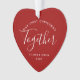 Surprise a couple with this First Christmas Together Red Heart Couples Name Ornament. It is a modern and elegant design on both sides of customizable dark red background ornament and has with "Our First Christmas Together" in trendy handwritten script lettering. Personalized with couple's first names and year. Makes a perfect keepsake gift idea.