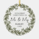 First Christmas Wreath Wedding Ceramic Ornament. Celebrate your first Christmas as a married couple in style. Our customizable template allows you to create a one-of-a-kind ornament that captures the love and joy of this memorable milestone.Add your names, wedding date, or even a special message to make it truly unique. It's the perfect keepsake to cherish for years to come!