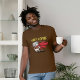 My 11 yo wore adult XL (5’7” 165#). The 8yo is small framed. She wore adult small and tied it in the back. Grandma wore adult large with long sleeve shirt underneath. Tall girl adult medium. Dark haired male adult large. Good quality dark Heather gray, Gildan brand shirt. -it was next up from basic choice and cost about $20 per shirt. Not too thick or thin. Washed and dried well, no major shrinkage. Not see-through. Can wear a bra under it fine. Screen print is just as shown and well done, front and back.