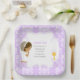 First Communion African American Purple Damask Paper Plates