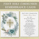 Personalize our beautiful traditional Catholic First Holy Communion Remembrance Card with a gold cross and Holy Eucharist accented with blue flowers. The beautiful Catholic Anima Christi prayer is on the back. All text and fonts can be modified.