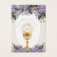 Personalize our beautiful traditional Catholic First Holy Communion Remembrance Card with a gold chalice and the Eucharist and lavender flowers. The beautiful Catholic Anima Christi prayer is on the back. All text and fonts can be modified.