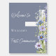 A dusty blue background, decorated with summer flowers, wildflowers in blue with a large white cross. Personalize and add a name. Back: no design