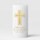 First Communion Faux Gold Cross and Elegant Script Pillar Candle