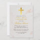 First Communion Gold Cross Marble Elegant Script Invitation