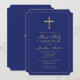 First Communion Gold Cross w/ Navy Blue Christian Invitation