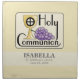 Celebrate a First Communion with this beautiful image of grapes and a cup for the wine and hosts. Set on a yellow gold color background, it is the perfect gift, souvenir, giveaway and party essential to give for a First Communion for either boy, girl, or adult making their First Holy Communion!