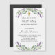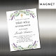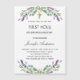 A white background decorated with lavender flowers and eucalyptus greenery. Personalize and a name and details.