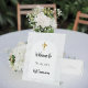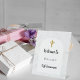 Marble print as background and a white arch shaped frame. A golden cross. Personalize and add a name. Back: no design