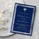 First Communion navy blue silver cross luxury Invitation