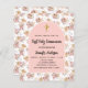 An arch frame on a pattern of pampas grass and pink flowers and a golden cross. Personalize and add a name and details.