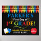 Our sign features a burst of colors, playful patterns, and delightful illustrations that will bring a smile to every child's face. The eye-catching design will make your first day of school photos truly memorable.