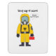 A child first day going to school wearing a hazard suit with the text "First day of school".