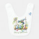 First of all, the shipping was fast. This bib was everything I had hoped for. It has such a smooth feel to it and is machine washable. The colors are vivid and the image quality is just as pictured on the web. Will be happy to give this as a New Baby gift !