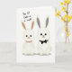Designed with two fluffy-eared bunny characters centered on a wide white background, the scene highlights their closeness with a gentle lean toward each other 🐰. Both are drawn in a soft creamy tone with light outlines, big shining eyes, tiny noses, and small upturned smiles that suggest a sweet bond. The bunny on the left has muted brown inner ears and wears a small beaded necklace in a matching earthy shade, adding a tender, dressed-up touch. The bunny on the right has cool grey inner ears and a neat black bow tie, giving it a slightly formal look that pairs nicely with its companion 🐇. A faint grey shadow sits under their feet, keeping the figures grounded while the background stays open and airy. Near the top, the text reads “Your 1st Easter as a couple!” in a casual hand-drawn style, set in dark grey so it stands out without overpowering the art 🌷. The letters are placed above the pair with generous spacing, leaving the bunnies as the main focus, and the bow tie is a crisp black shape against the creamy fur.