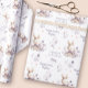 Cute Easter personalized wrapping paper with a cute bunny girl in soft purple shades, 2 different texts and flowers all on the white background. Easily personalize the text. - Kate Eden Art