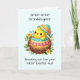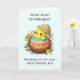 Celebrate your great-great-granddaughter’s very first Easter with this adorable card, filled with the joy and wonder of the season! A sweet little chick breaks free from its shell, surrounded by colorful spring flowers, symbolizing new beginnings. The soft pastel teal background adds a gentle, whimsical touch, making it perfect for a baby’s first Easter keepsake. Inside, a heartfelt message shares warm wishes for a day filled with love, cuddles, and happiness. A precious way to mark this once-in-a-lifetime milestone and create a cherished memory for years to come!