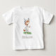Adorable t-shirt to celebrate your child or grandchild's first egg hunt. The illustration of the little one in an Easter bunny costume is beautiful. Personalize the text with your own text. Illustrated and designed by Patricia Alvarez.