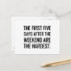 Employees with Sunday blues about returning to work on Monday joke the first 5 days after the weekend are the hardest. Check out this funny custom design on tees, shirts, mugs, gifts and apparel.