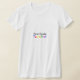 A t shirt featuring the text "first grade teacher" with "teacher" in a fun font of rainbow colors. Shirt available in other colors and styles including long sleeves, men's, and more.