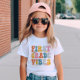 Illustration featuring the text "First Grade Vibes" with groovy lettering and flowers. Great for your back to school first grader!