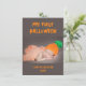 Halloween birth announcement or greeting card with a photo of your baby on his/her first Halloween. Personalized with your child's name. The background color on this card is customizable, as well. Contact me for assistance with your customizations.