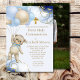 First Holy Communion Bear Balloon Blue Gold Swirl Invitation