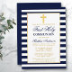 First Holy Communion Blue Striped Gold Invitation