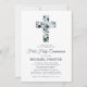 First Holy Communion Boy's Blue Floral Cross Invitation