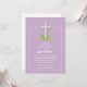 Pearl white cross and greenery on a lavender background with white text, perfect design for First Communion, Baptism, Christening or any religious special occasion. MATCHING items in our store.