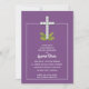 Pearl white cross on leafy greens on purple background with white text, perfect design for First Communion, Baptism, Christening or any religious special occasion. MATCHING items in our store.