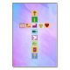 Modern and abstract First Holy Communion illustration featuring a cross with minimalist First Holy Communion symbols on a watercolor pastel lavender tourquoise background.