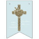 First Holy Communion Cross with Dove and Heart Elegant Gold Look Cross on Soft Blue Background Party Bunting Banner