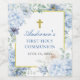 First Holy Communion Dusty Blue Floral Wine Label