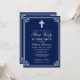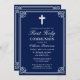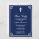 First Holy Communion Elegant Woven Frame Navy Blue Invitation