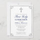 First Holy Communion Elegant Woven Silver Frame Invitation