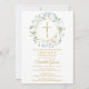 A decorative greenery garland and gold cross sit above your special first holy communion save the date information on this elegant design.