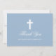 Elegant First Holy Communion Thank You Card with Cross. Light Blue. Photo Back. Silver Frame.