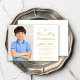 Plain white envelopes are included with paper invitations and will come to fit the invitation size you select. If you don’t need the envelopes, you may choose to not receive them by selecting the dropdown below "Envelopes" and choosing "None." If you’d like to have a design on your envelopes, you can browse all of these available envelopes to find the design that complements your First Holy Communion One Photo Elegant Boy Invitation.