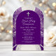 A sophisticated and elegant First Holy Communion invitation featuring a beautiful purple and silver agate design. Printed on premium acrylic, this invitation combines modern style with timeless grace. The rich purple tones paired with shimmering silver accents create a refined and regal aesthetic, making it the perfect choice for a meaningful and unforgettable First Holy Communion celebration.