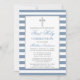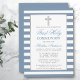 First Holy Communion Silver Dusty Blue Striped Invitation