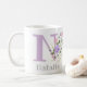 Design features Monogram & Name with Flowers either side in a water colour pastel style. Example name is Natalie. Initial is the letter N.