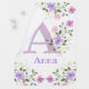 Design features the baby's Monogram & Name with Flowers either side in a water color pastel style. Initial is the letter A. Anna